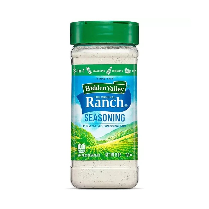 With Hidden Valley� Original Ranch� Seasoning Mix, it�s easy to add the unique taste of ranch to all your favorite foods. Just sprinkle over everything from chicken and potatoes, to veggies and savory snacks, like popcorn. This Ranch seasoning gives businesses and large families lots of versatility. For creative menu ideas with bold, unique flavors, use this seasoning with its secret blend of dry herbs and spices to make delicious entrees and innovative side dishes. The canister sits conveniently on tabletops and is perfect as a topping for savory snacks and appetizers. Ideal for restaurants, cafeterias and other foodservice facilities, Hidden Valley� Seasoning Mix delivers endless possibilities for adding flavor to favorite menu items.Ranch Buffalo Wings Recipe Pretty sure we'll convert some buffalo wing purists with this recipe. Brought to you by: Hidden Valley RanchPrep time: 5 mins | Cook time: 35 mins | Servings: 6-8Ingredients: 1/2?cup butter, melted1/4 cup hot sauce 3 tbsp white vinegar 24 chicken wings or drumettes 2?tbsp?Hidden Valley� Original Ranch� Seasoning & Salad Dressing Mix ShakerSteps:Preheat oven to 350�F.In a small bowl, whisk together butter, hot sauce and vinegar. Dip drumettes in butter mixture; arrange in single layer in large baking pan. Sprinkle with ranch seasoning. Bake until chicken is browned and an internal temperature of 165�F has been reached, about 30 to 40 minutes. Serve hot with celery and Hidden Valley Original Ranch dressing, for dipping.If the item details above aren�t accurate or complete, we want to know about it.Report incorrect product info