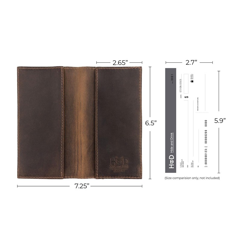 Hide & Drink, Checkbook Cover, Minimalist Organizer, Check Presenter, Bill Holder for Waiter and Waitress, Restaurant Accessories, Full Grain Leather, Handmade, Bourbon Brown