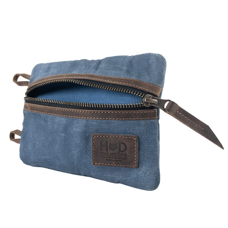 Hide & Drink, Multi-Tool Pocket Pouch XL, Compact Multipurpose EDC Zippered Bag, Mini Camping Tool Case, Knife Holster, Waxed Canvas, Handmade Slim Organizer, Blue Mar/Bourbon Brown