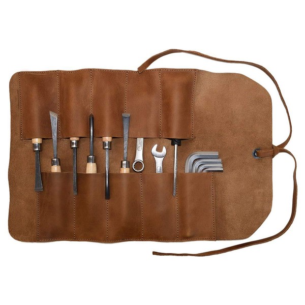 - VINTAGE-STYLE TOOL STORAGE: Add a touch of class to your tools and give them a stylish home with this finely handcrafted Bourbon Brown Tool Roll. Perfect for DIY enthusiasts, specialists, and even beginners who have accumulated a few tools over time. Crafted using Full Grain Swayze Suede for durability and protection, this is a stylish answer to your storage needs for your most prized tools.