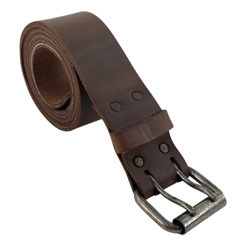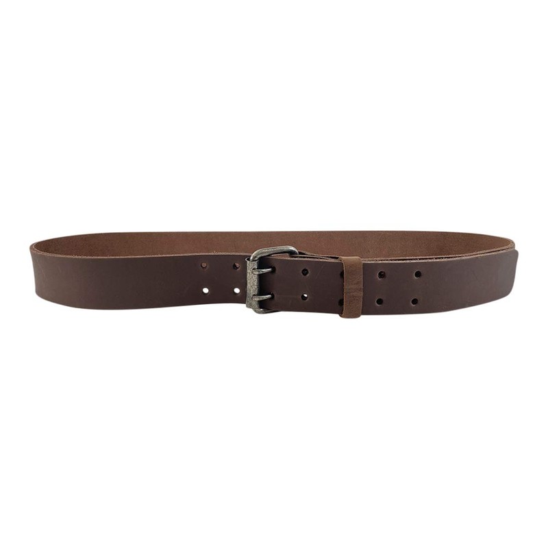 Hide & Drink, Rustic Reinforced Leather Belt/Rustic Double Prong Buckle, 1.5 in. Wide Handmade :: Bourbon Brown (Size 36)