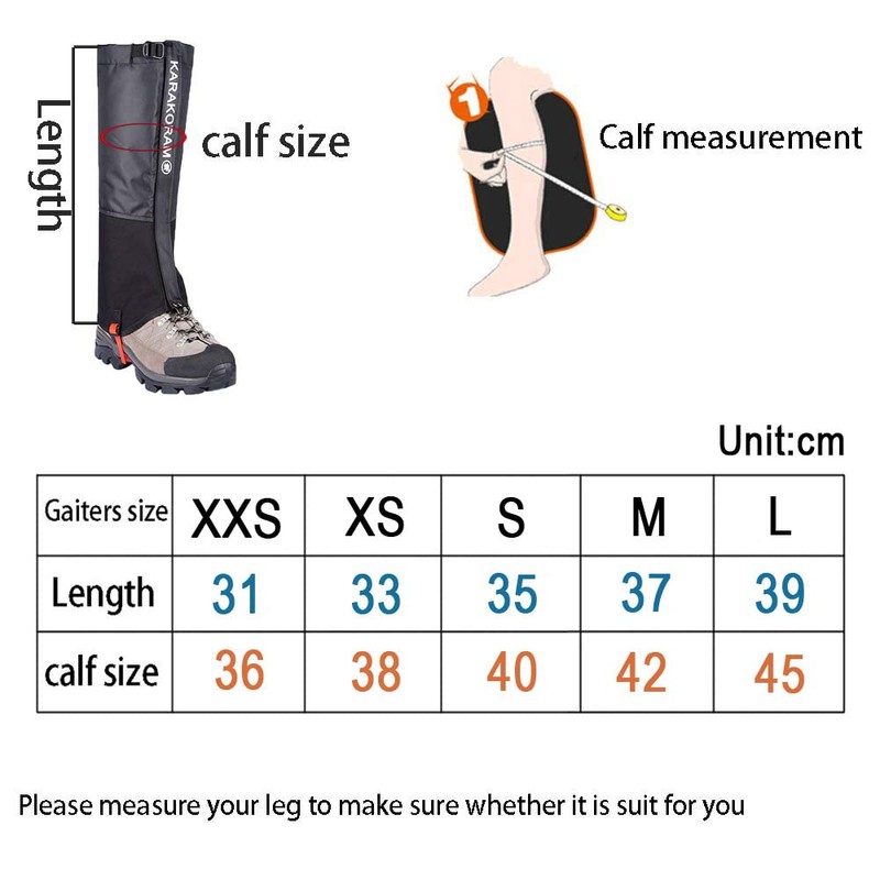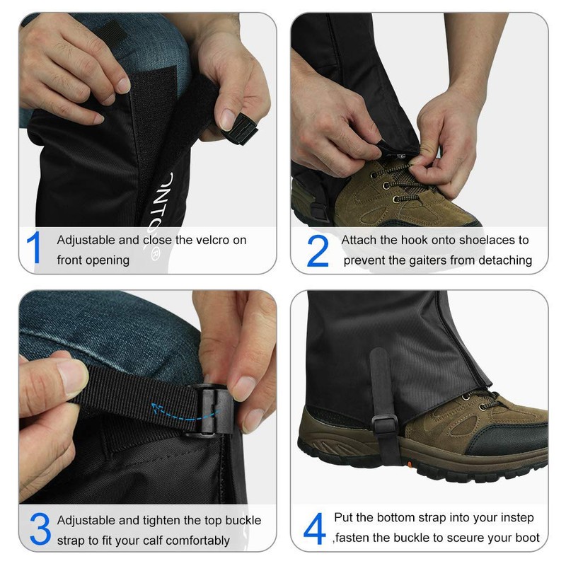 - Multifunctional: excellent waterproof and dust-proof material prevents water, rain, snow, mud, wind, sand, mosquitoes and insects from entering your shoes or trousers and keeps your legs warm. It is flexible for snow, desert, rain, jungle, hiking, hunting, running, hiking, skiing, cycling, etc