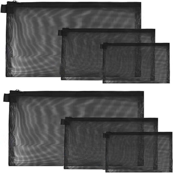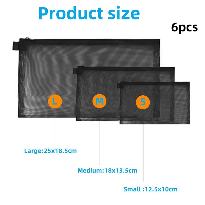 - 【Package Contentsn】:6pcs The set of 3 mesh bags different sizes offers an attractive and lightweight solution for many storage needs. They have enough capacity to hold your stationery and makeup tools, lightweight and portable to carry