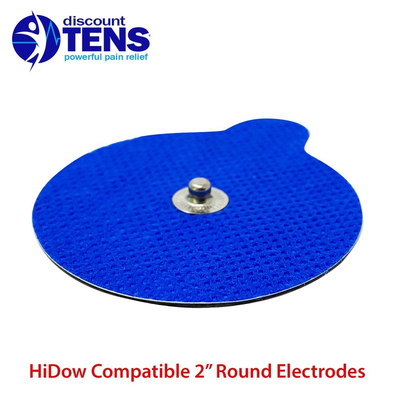 • 2" round Hi-Dow Compatible electrodes. Discount TENS Brand - A US Veteran owned small business! - Professional HiDow compatible replacement electrodes for TENS units. iDow compatible replacement electrodes for TENS units.