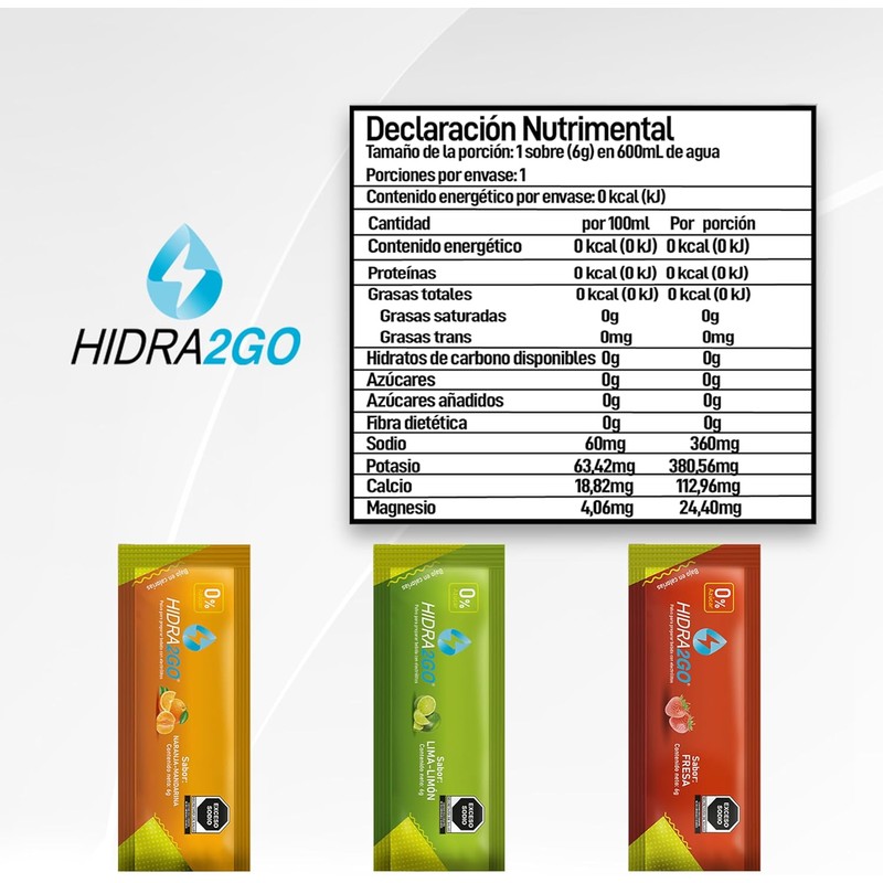 HIDRA2GO Electrolitos en Polvo - Pack 30 sobres (6g c/u), Sin Azúcar, Vegano