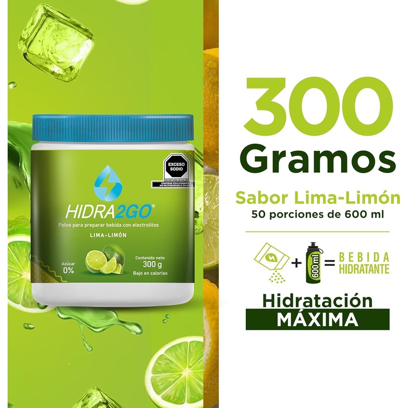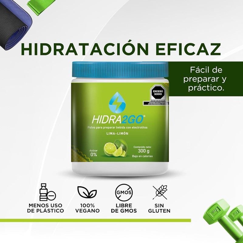 HIDRA2GO | Electrolitos Sin Azucar en Polvo 300gr - Sabor Lima Limon | Pre Workout Hidratación Efectiva | Electrolit Pre Entreno Suplementos Gym | Sin Calorías Vegano y Ecológico