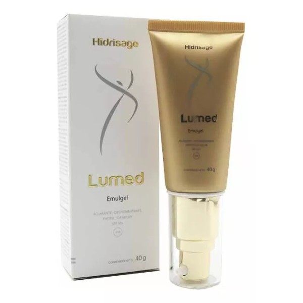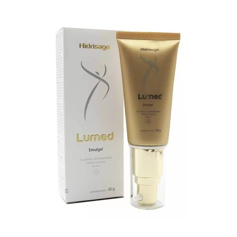 Hidrisage Lumed Emulgel es un exclusivo aclarante y despigmentante, eficaz y seguro con una formulación única que aclara y unifica el tono en pieles con manchas ocasionadas por el sol, la edad, acné u otros factores.Además, la tiene una fórmula balanceada que brinda luminosidad. Al mismo tiempo, ofrece una alta protección frente a la radiación ultravioleta A y B y previne la aparición de nuevas imperfecciones en el tono de la piel. Es oara rostro, cuello, escote y manos. Beneficios y resultados clínicos: Homogeneidad en el tono de piel. Luego de 56 días el 90% de las voluntarias tuvo un efecto positivo y una mejora significativa en la homogeneidad del tono en la cara y su piel en general. Determinación del aclaramiento de manchas de la edad. El 95% de las voluntarias tuvieron un efecto positivo luego de 56 días de uso con un aclaramiento promedio de un 32% en relación al inicio del tratamiento. Modo de empleo: Aplicar dos veces al día, uniformemente y en cantidad suficiente sobre la piel limpia y seca en las zonas que se quieran aclarar (rostro, cuello, manos, escote). Uso diurno/nocturno