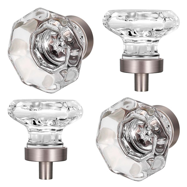 HIEMEY Crystal Drawer Pulls and Knobs 4 PCS,Brushed Nickel Glass Knobs for Cabinets and Dresser,Bathroom Kitchen Cabinet knobs,Octagon
