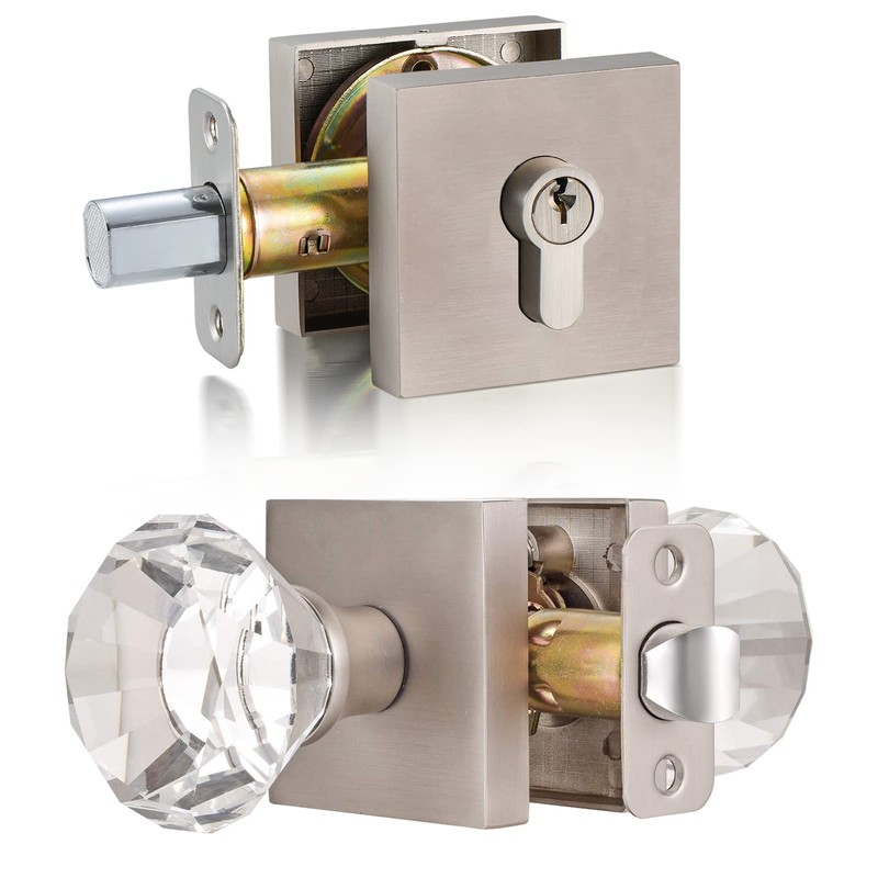 HIEMEY Glass Crystal Diamond Door Knobs and Single Cylinder Deadbolt Set,Brushed Nickel
