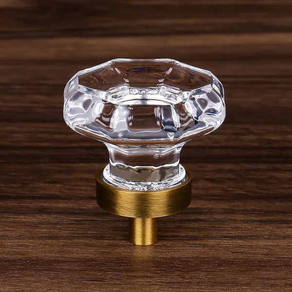 HIEMEY Glass Crystal Dresser Cabinet Knobs Antique Vintage Brass, Octagon Knobs and Pulls for Dresser Drawers, Bathroom Kitchen Cabinet Drawer Knobs Set, 8 Pcs