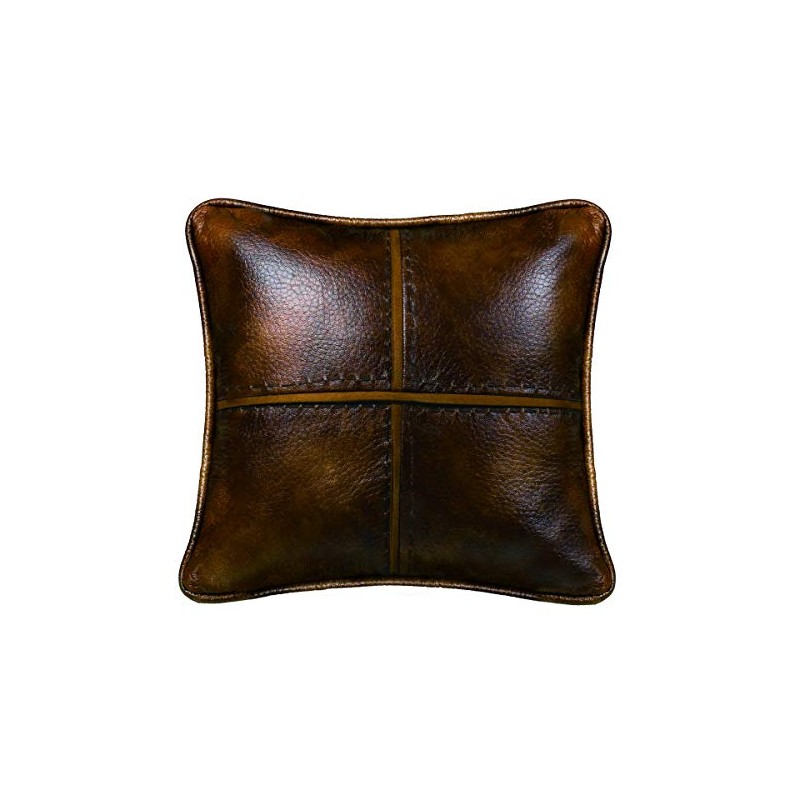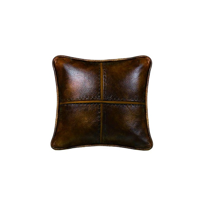 Paseo Road Brighton Western Decorative Throw Pillow, 18x18 inch, Rustic Cabin Lodge Decorative Pillow, Brown Faux Leather Stitched Pillow for Bed, Couch, Sofa