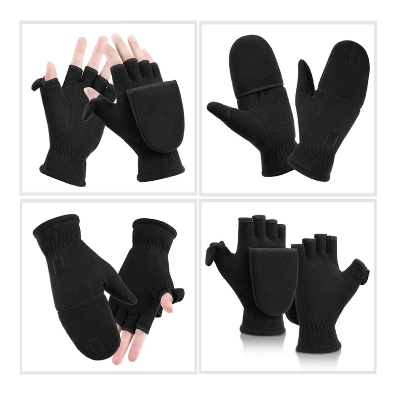 HieoAnir Winter Gloves Thermal Fingerless Gloves Convertible Flip Top Mittens Warm Polar Fleece Gloves for Running Driving Typing (Black, L)