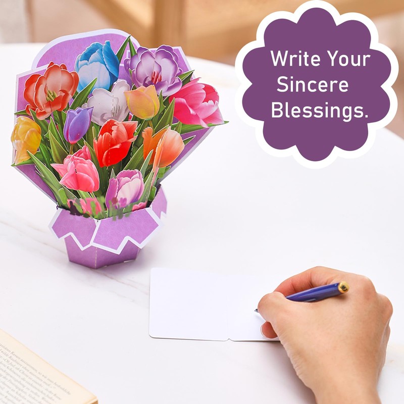 Hierein Mum Birthday Card, 3D Tulips Flower Bouquet Pop Up Birthday Card with Notecard Envelope, Gifts for Mom, Get Well Soon, Retirement Cards, Thank You Card, Motherâs Day Card, Valentines Day Card