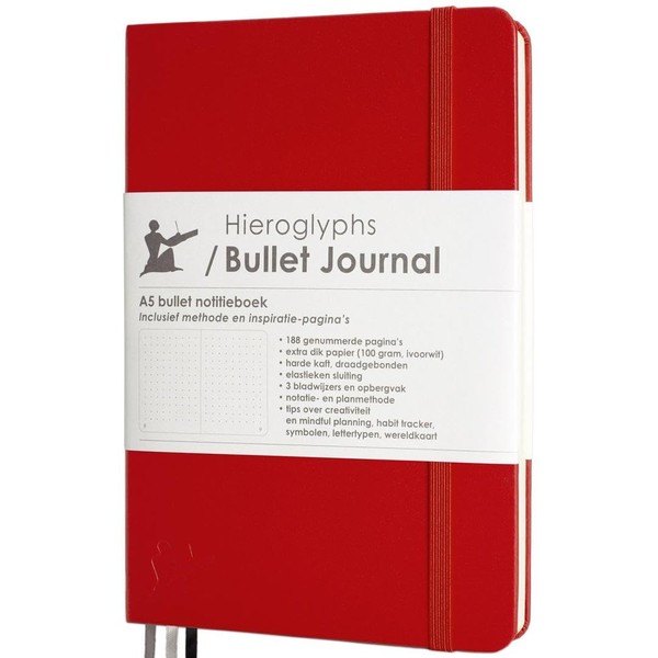 Hieroglyphs Bullet Journal - Dotted Notebook A5 - with System - 189 Numbered Pages, Folding Pocket, 3 Bookmarks, Elastic Closure - 100 g/m² Paper (Midnight Blue)