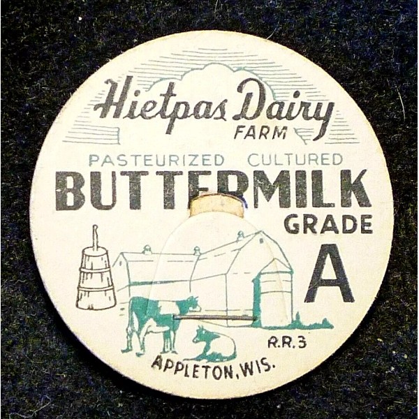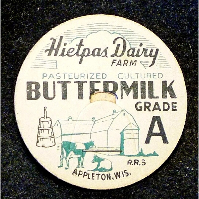 HIETPAS DAIRY - APPLETON, WIS. - GRADE A BUTTERMILK -Milk BOTTLE CAP - 42mm