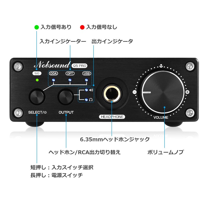 - The Q5 PRO is a multi-functional DAC and headphone amplifier with PC-USB/Optical/Coaxial input, compatible with many audio devices such as smartphones, computers, TVs, CD players, TV set boxes, etc. Stereo L/R RCA / 6.35mm headphone jack output allows you to enjoy HiFi music in many ways