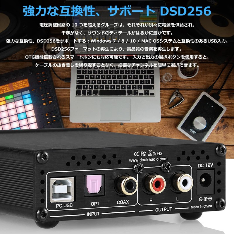 - No interference, and much more details in the sound. Strong compatibility, support DSD256: USB input compatible with Windows 7/8/10/MAC OS system, playback DSD256 format, high quality music. Compatible with smartphones equipped with OTG function. The input and output selection buttons allow you to easily select the channel you need without repeatedly plugging and unplugging