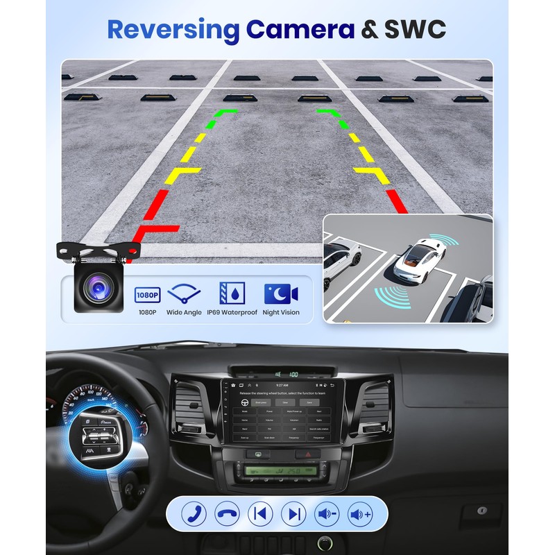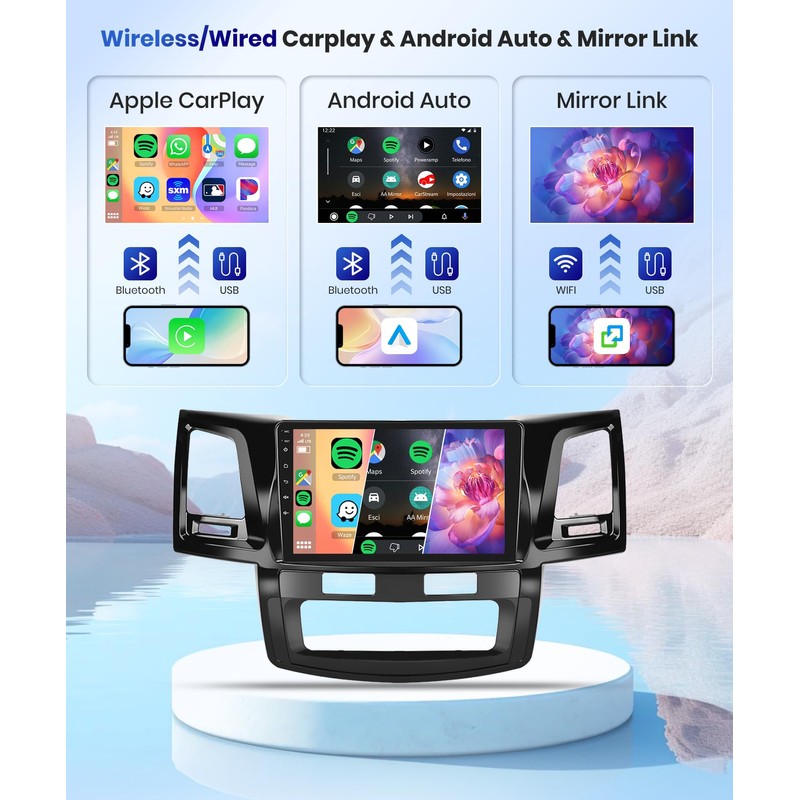 HiFi for Toyota Hilux 2005-2014 Android13 Car Radio Stereo, Wireless Carplay Android Auto 9”Touch Screen Bluetooth Car Audio Receiver GPS Navigation WiFi Backup Camera FM/RDS+SWC