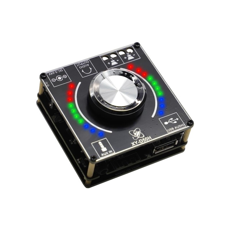 - 【TPA3116 HIFI CHIP】This Bluetooth power amplifier board adopts TPA3116 chip: stereo dual-channel output, peak power up to 50W+50W. Wide voltage input DC: 5-24V. 【High compatibility】Most of the DC adapters on the market (plug size 5.5mm*2.1mm) can basically meet the needs of the XY-D50H Bluetooth power amplifier board.