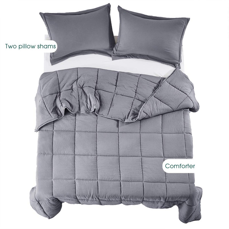HIG 3pc Prewashed All Season Down Alternative Comforter Duvet Insert -Quilted Comforter with Corner Tabs -Box Stitched -250GSM Fiberfill Chic Farmhouse Style Bedding(Salomon,Queen,Gray)