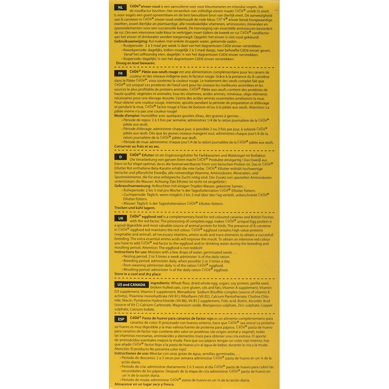 • CéDé egg food red is a feed supplement for coloured canaries and domestic birds that have a red factor.