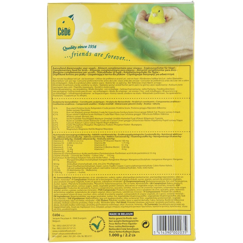 • CéDé egg food contains high-grade proteins, both animal and vegetable, all the necessary vitamins, amino acids, minerals and micro-nutrients for successful breeding.