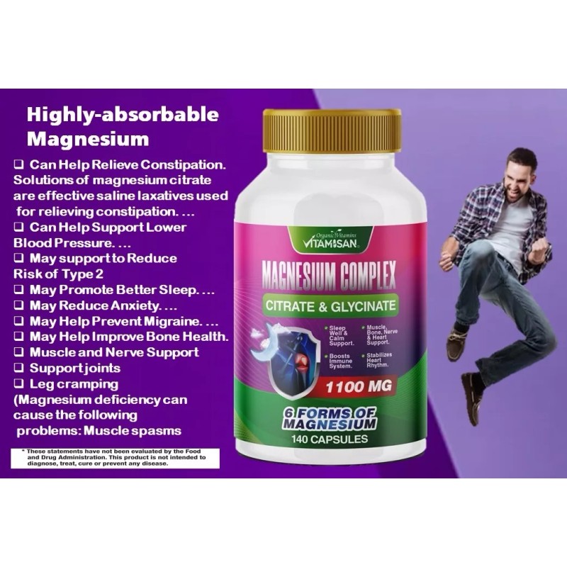 High Absorption Magnesium Citrate Supplement 140 capsules chelated COMPLEX