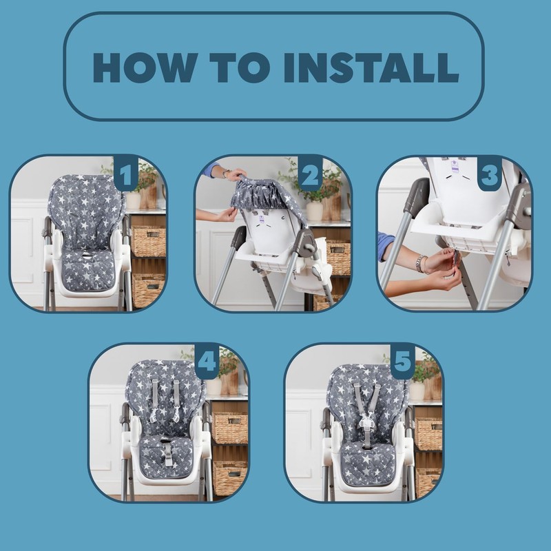 Todays Kids High Chair Pad - Machine Washable High Chair Cover, Easy Use Highchair Cushion, Soft Highchairs Covers for Baby, Padded Highchair Cover w/Elastic Back, Fits 3-5 Point Harness Chairs