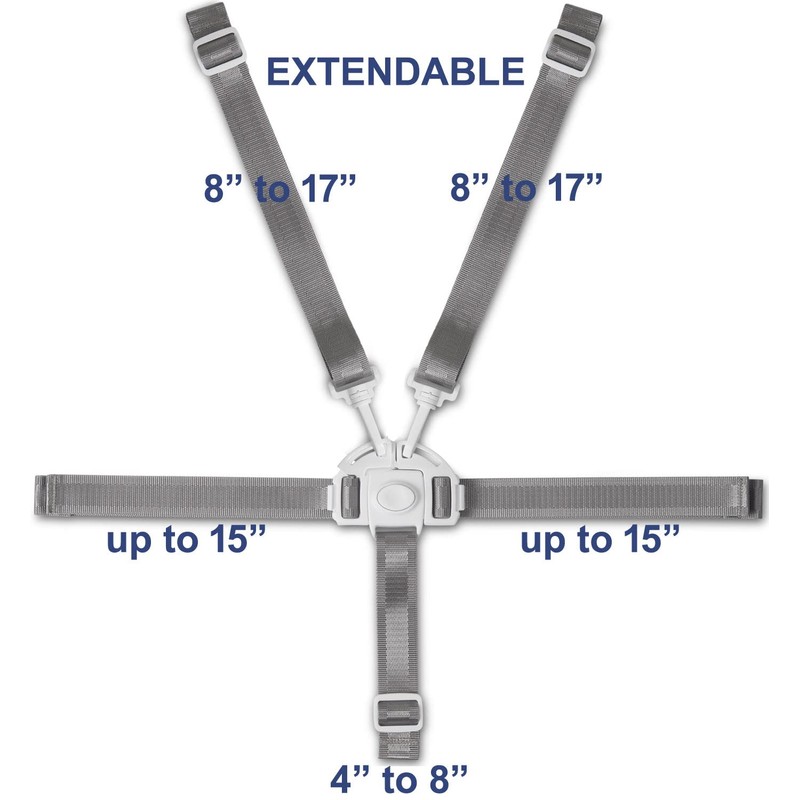 - This 5 point harness safety strap is NOT suitable for Chicco, OXO and Perego high chairs.