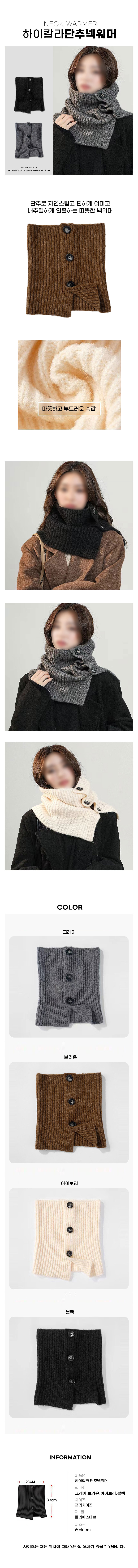 High-Collar Button Turtleneck Winter Neck Warmer Scarf Brown 3ea