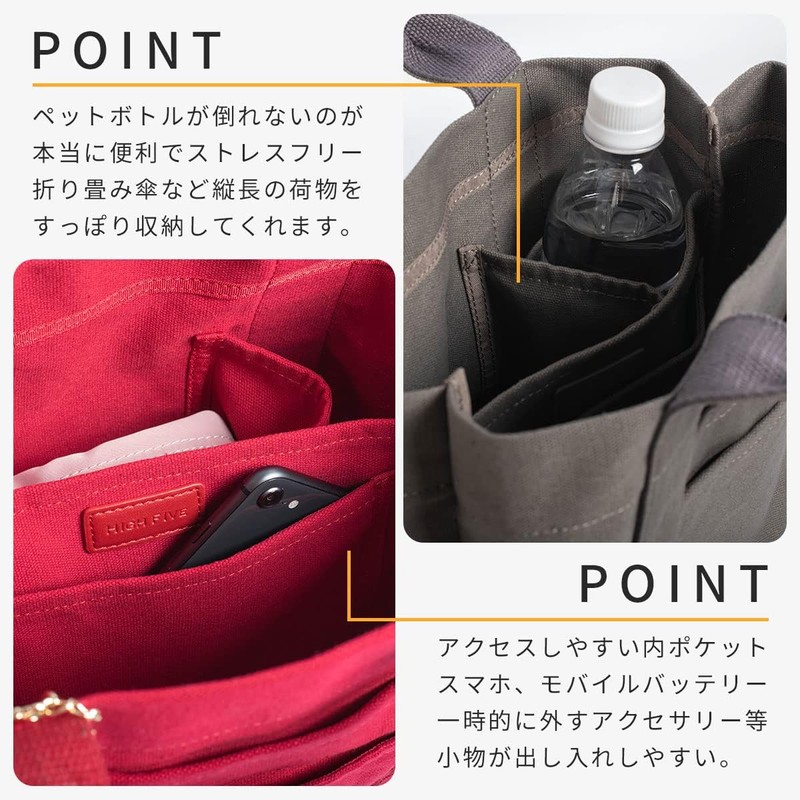 HIGH FIVE Mini Tote Bag, Dividers, Karukaban, Canvas, Multiple Pockets, Multiple Storage, Bottom IC Card, Gusset, Men's, Women's, Large Capacity, Mini Tote, Brand, Simple, Plain, white grey