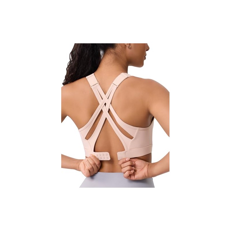 High Impact Sports Bra for Women – High Support Molded Cups, Adjustable Straps & Back Closure, Cross, Workout & Running Bra Nude