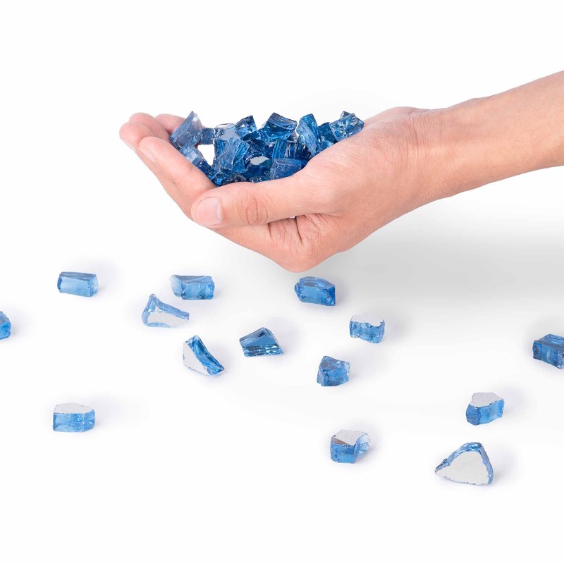 - OCEAN BLUE COLOR – Our Neptune Blue fire glass is inspired by the warm blues of the ocean on a sunny day. Watch your flames dance along the beautiful medium blue hue of this reflective fire glass!