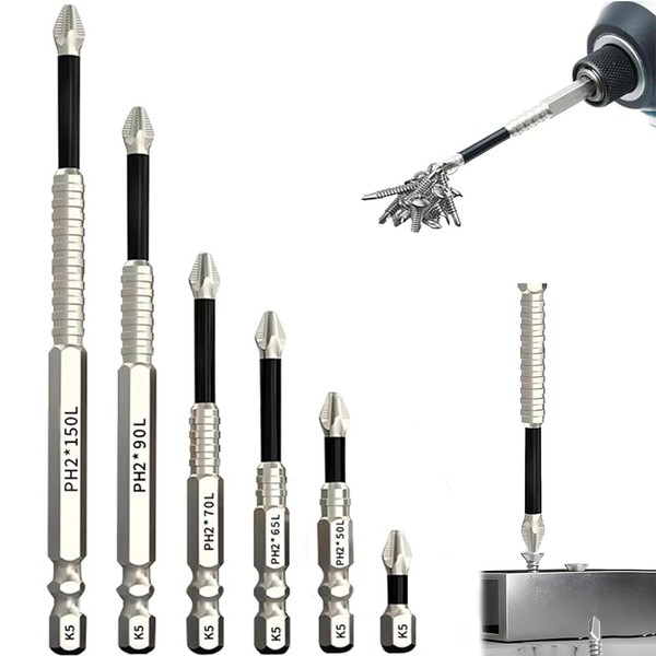 - Back Preparation Drill Head: Our anti-slip PH2 impact driver bit set are engineered to handle high-speed torque applications. The unique design allows the twisting part of the drill to bend under load, distributing pressure evenly and enhancing durability.