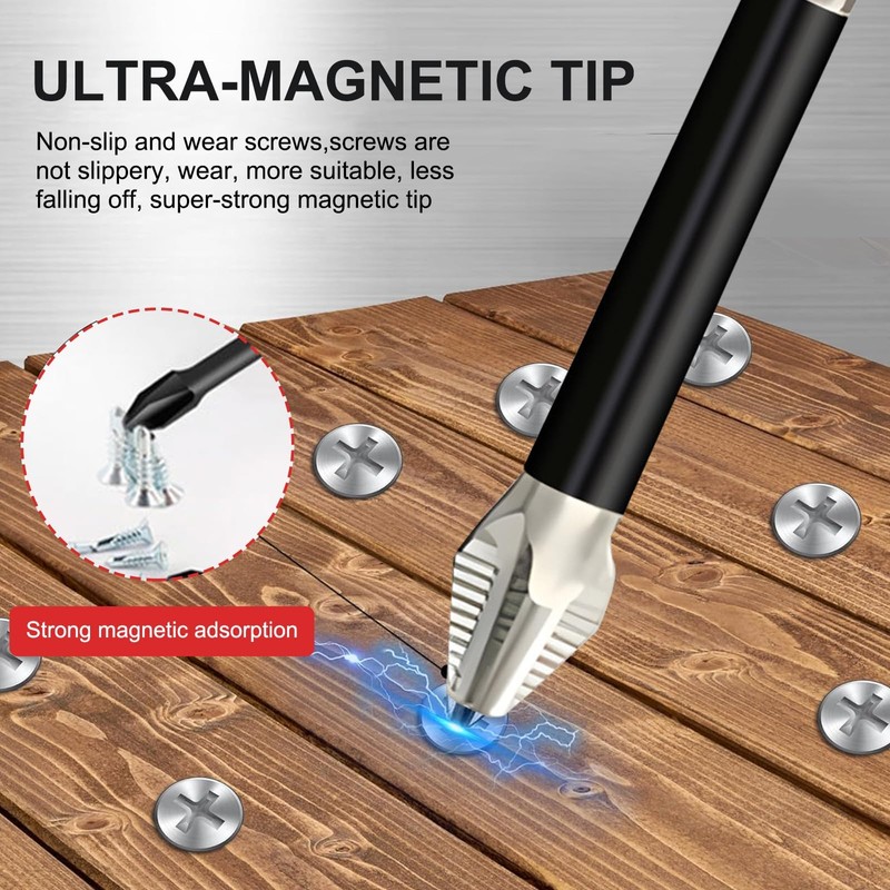 - High Magnetic Screwdriver Drill Bit Set : Each magnetic screwdriver bits is equipped with a strong magnet at the tip, allowing you to easily pick up and secure screws without slipping or stripping.This ensures a secure hold and precise placement every time.