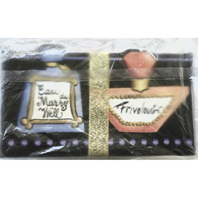 - Cardboard holder pictures fancy, colorful french perfume bottles on the sides and bottom