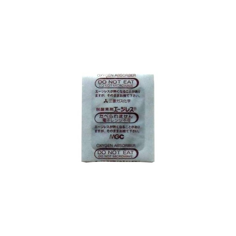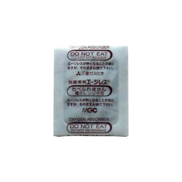 - 商品形態:外装袋には、脱酸素剤が所定数入っています。 使用方法:●酸素検知剤エージレスアイをチェック!酸素検知剤エージレスアイの色はピンクであることを確認します。●開封したら・・・まずは、エージレスアイおよび緑の袋の脱酸素剤を取り出して再利用できませんので廃棄してください。●脱酸素剤FXは、商品から蒸散してくる水分にふれることで反応する脱酸素剤ですので、商品から蒸散する水分が届きやすい場所に装填します。また脱酸素剤FXは片面吸収タイプです。吸収面(無地の白い面)を商品に向けて封入してください。●小分け品のため、一度にすべて使用してください。※こちらは水分依存型の脱酸素剤ですので、乾燥食品には使用できませんのでご注意ください。高湿度の空気に触れてはじめて酸素を吸収します。時間が立つと脱酸素剤の機能は弱くなりますので、開封後、1時間以内に使用してください。