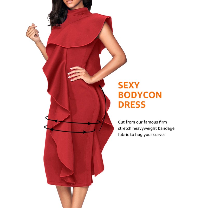 - Design: invisible zip,high neck, sleeveless, bodycon, solid color, elegant and sexy, above the knee length, bodycon cocktail party dress,fitted midi dress.