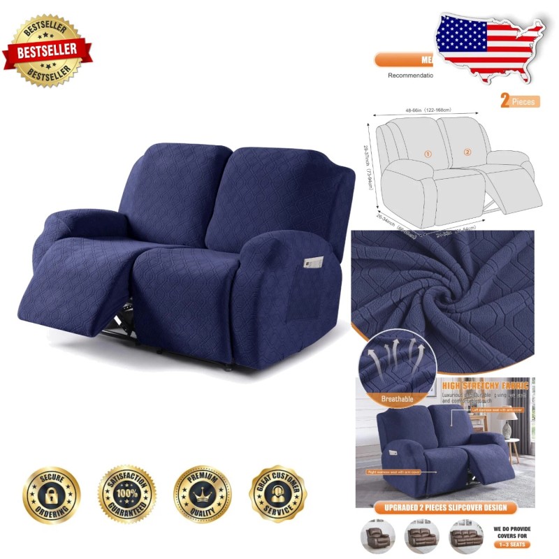 High-Performance Stretch Recliner Protector – Modern 2-Piece Slipcover in Navy