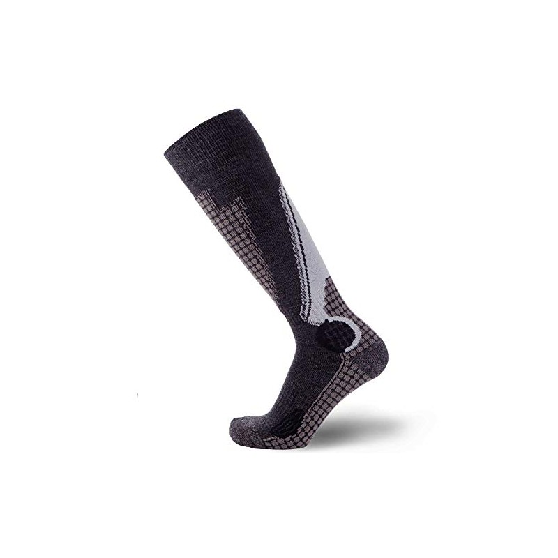 High Performance Wool Ski Socks - Thermal Warm Merino Wool OTC Sock, Men Women (1 Pair - Black/Grey/Silver, Small)