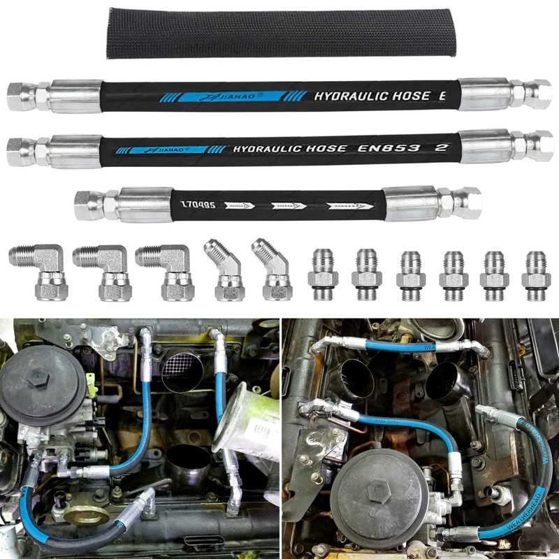 - 【GREAT COMPATIBILITY】-- The High Pressure Oil Pump HPOP Hoses Lines Kit & Crossover Line fit for Ford 7.3L Powerstroke engines 1999, 2000, 2001, 2002 and 2003, also suitable for all 99-up E-series & Excursion with 7.3 engines. Replaces YC3Z-9J323-E, YC3Z-9J323-F, F81Z-9J323-E.