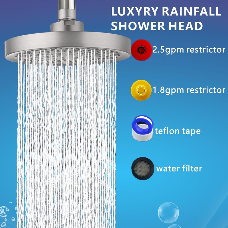 - High-Pressure Technology -- It turns out that the smaller the shower size, the greater the water pressure, and a 6-inch shower is just the right size. The upgraded internal structure can provide powerful water flow even under low water flow, bringing a comfortable shower experience and a cleaner shower environment to your family.