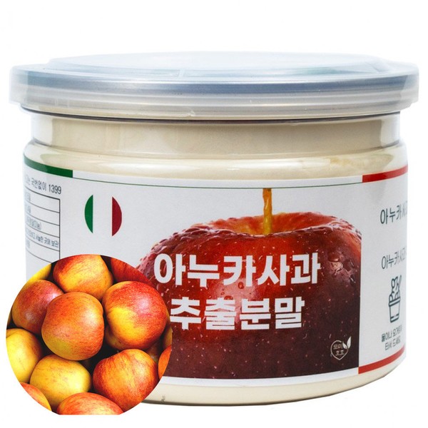 - 원(재)료명 및 함량: 아누카사과추출분말(이탈리아산)100% (아누카사과추출물 70%, 덱스트린 30%)