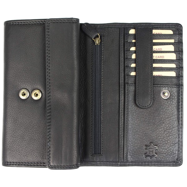 - Your new wallet: the trendy vintage design of your new large women's wallet makes it the perfect companion for everyday use. The practical division of the women's wallet with many card slots for credit cards, banknotes or ID as well as an extra coin compartment that can be closed with a press stud ensure order. 10 credit card slots, 3 large slip pockets and a 3-part flip pocket open help store all your valuables safely and neatly.