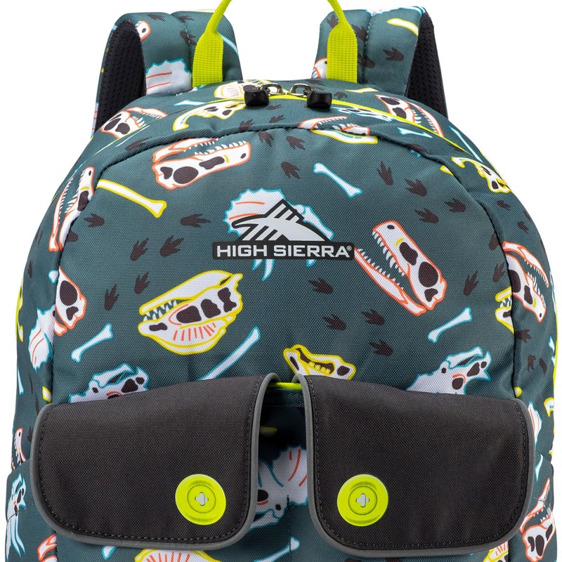 High Sierra Chiqui Backpack Travel Bag with Padded Tablet Sleeve, Accessory Pocket and Reflective Straps, Dino Dig/Mercury