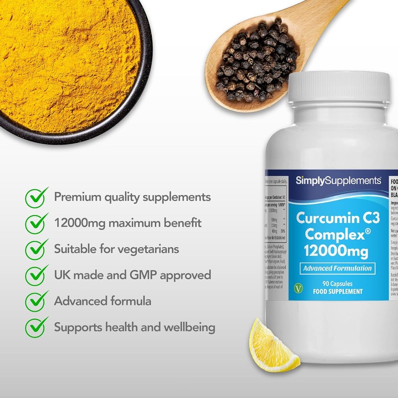 BOOSTED ABSORPTION WITH BIOPERINE: Our Curcumin C3 Complex is enhanced with Bioperine, a black pepper extract that significantly improves curcumin absorption, ensuring you receive maximum benefits. EFSA-approved claims.