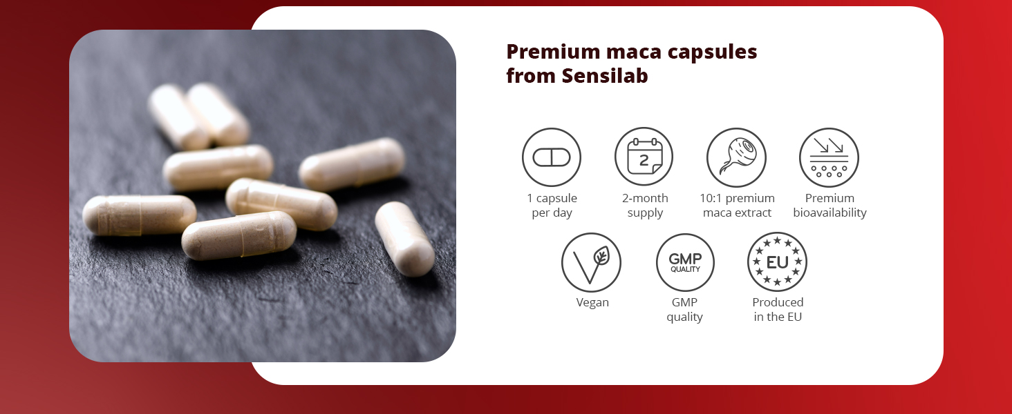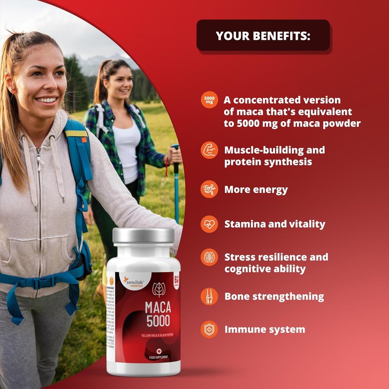High-Strength Maca Root Capsules - 500mg Extract Equivalent to 5000mg Fresh Maca - 60 Capsules for 60 Days - Enhanced Bioavailability with Piperine - Premium Maca Supplement by Sensilab