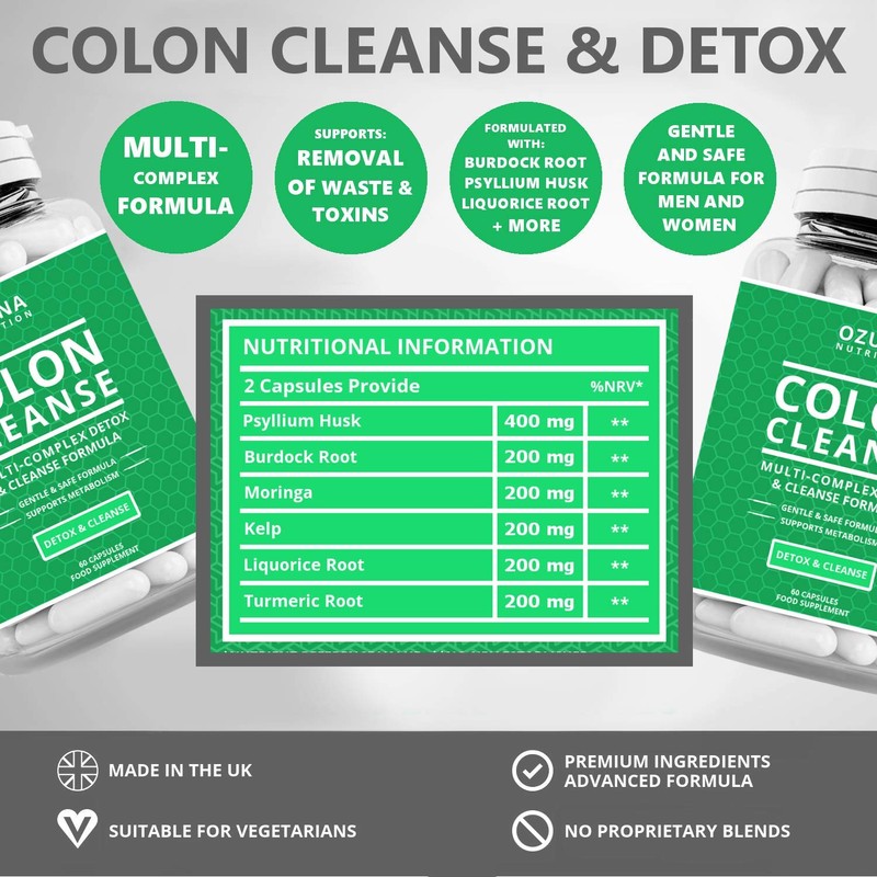 - PROVEN POWERFUL INGREDIENTS: Ozuna Multi-Complex Colon Cleanse & Detox has been expertly formulated to gently cleanse your colon and gut with powerful natural ingredients including Burdock Root, Psyllium Husk, Moringa, Liquorice Root plus more!