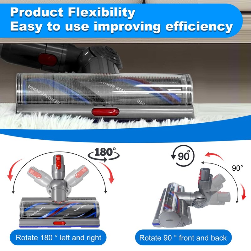 The low-profile dyson head design (3.1" tall) enables 180° left/right + 90° tilt movement, making this dyson v11 head and dyson v8 head ideal for cleaning under sofas, beds & cabinets. The versatile dyson vacuum head replacement ensures comprehensive cleaning in hard-to-reach areas.