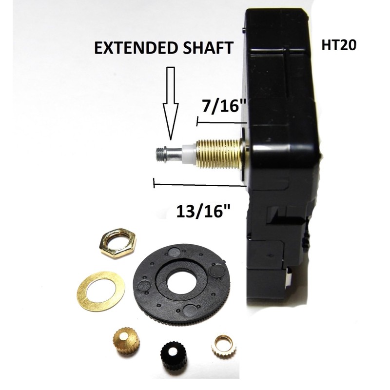 - High torque quartz motor (silent) and 17-3/4"; (#3) balanced metal hands with high torque motor 9/16" threaded shaft x 5/16" in diameter. This is a continuous motion high torque motor, no stepping of gears, quiet, no ticking. See my other auctions for other styles and lengths.